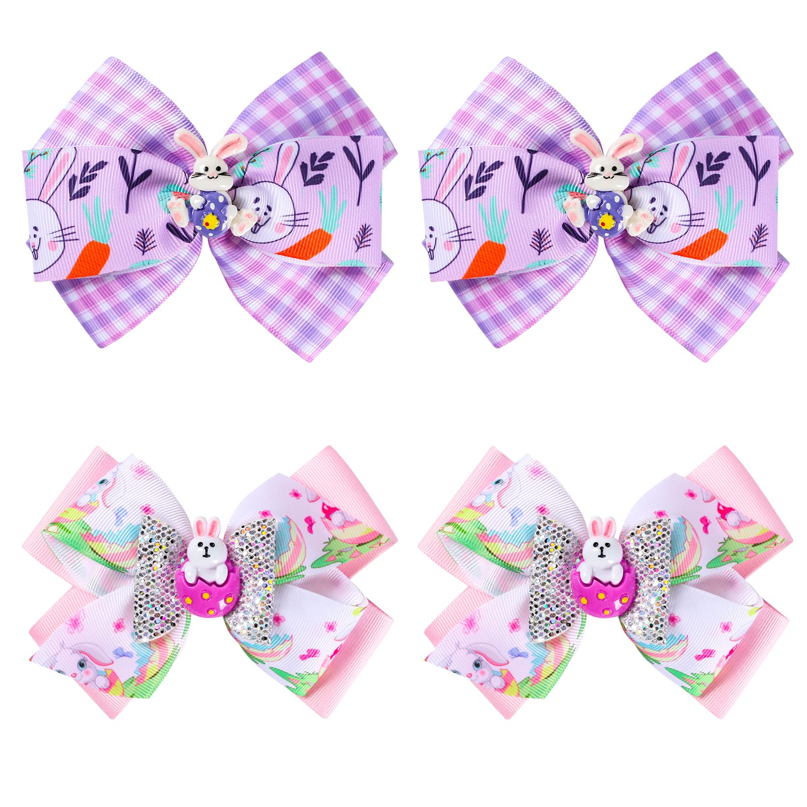 4 Pieces Easter Bows Hair Clips Easter Bows Clips Grosgrain Hair Barrettes Rabbit and Egg Headwear Hairpin Easter Hair Accessories Ribbon Alligator Clips for Girls Toddlers Kids Easter Party